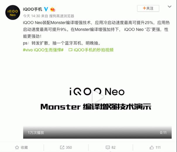 ·iQOO官微展示Monster编译增强技术对比视频,APP开启速度提升明显;