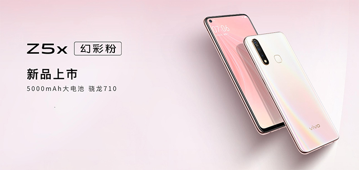 7月20日,vivo Z5x全新配色幻彩粉在其官方商城正式开售,目前仅限6GB+128GB版本,限时售价1598元。Z5x是vivo首款配备6.53英寸挖孔屏屏幕的机型,分辨率2340x1080,屏幕比例19.5:9。4.59mm超小孔径以及1.76mm左右窄边框,实现90.77%超高屏占比。vivo Z5x将听筒、距离感应器隐藏于屏幕上方的微缝之中,光敏传感器隐藏在手机屏幕下方,正面浑然一体。性能方面,搭载高通骁龙710,全系标配UFS2.1闪存、LPDDR4x内存标准,支持vivo Multi-Turbo,包括Center Turbo、AI Turbo、Net Turbo、Cooling Turbo、Game Turbo。采用AI超广角三摄,1600万像素主摄像头+200万像素景深摄像头+120°超广角镜头。配备5000mAh大容量电池,综合续航时长相比前作Z3提升50%以上,支持反向充电功能,可以给蓝牙耳机、智能手环等其他硬件设备充电。