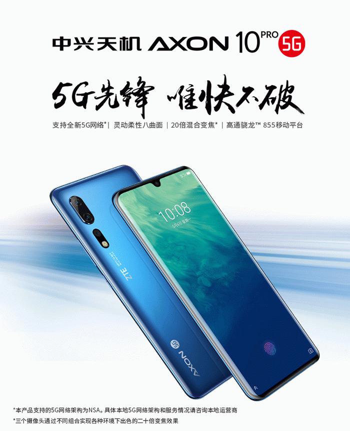7月23日,中兴首款5G新机AXON 10 Pro 5G版正式开启预订,这也是国行首款率先开卖的5G手机。预售平台包括京东、天猫、中兴手机商城,6GB+128GB版预售价4999元。AXON 10 Pro 5G版内置高通骁龙X50调制解调器,支持全新5G频段,速度快、延迟低、网络稳。采用6.47英寸AMOLED柔性曲面水滴屏,分辨率为2340×1080,屏幕纵横比为19.5:9,屏占比达到了92%。机身四周采用深弯曲面3D玻璃,曲线柔美顺滑,贴合手掌,握感舒适。搭载高通骁龙855旗舰平台,前置2000万像素,后置4800万主摄+800万长焦+2000万125°超广角镜头组合,支持20倍平滑连续变焦、超级夜景模式等,电池容量为4000mAh。