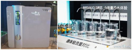 作为净水行业标杆企业,A.O.史密斯也在会场上展出了几款黑科技产品。为了解决无桶机净水速度慢的问题,潜心研发出大流量反渗透净水机3000F1,它独有“专利高效卷膜工艺”及“高品质性能的核心集成增压系统”二大核心技术,将流量提升到3L/min,出水快、水量大。更有专利MAX5.0长效即滤型反渗透系统和专利换芯提示水龙头,不仅有效的过滤重金属和水中杂质,保证饮水健康,还直接提升滤芯寿命长达5年,多方位解决消费者的净水问题。