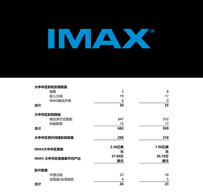 IMAX中国上半年票房收入2.36亿美元 影院数量达662家