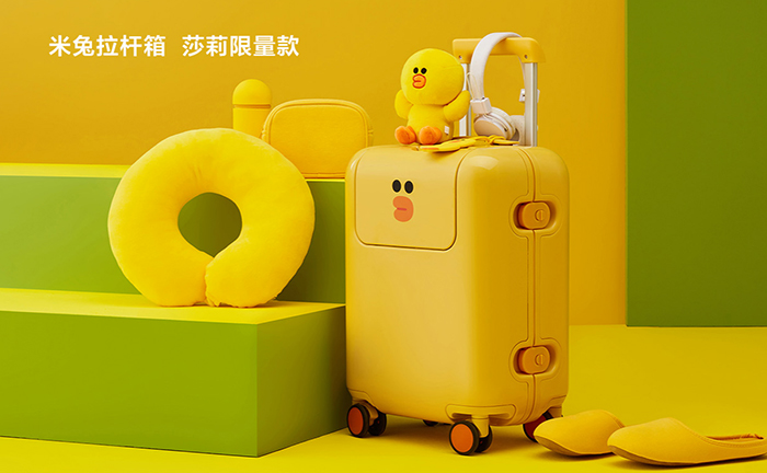 米兔拉杆箱莎莉限量款是小米与Line Friends联名合作款,行李箱外部涂装为莎莉鸡代表性的黄色,并且印上了莎莉鸡的形象。整体大小为17英寸登机箱,重量仅2.9kg,专为孩子出行设计。拉杆箱外壳选用德国拜耳PC材料,首次采用注塑框体粘合的真空成型工艺,耐冲击不易变形。四挡可调节拉杆,内嵌式全铝合金加厚拉杆,顺滑手感。拉杆箱内部提供内衣区、外衣区、鞋子区或洗漱收纳区共三个独立空间,每个分区配有独立拉锁。此外还具备独立的前开盖收纳区,创新圆形旋转开关,容积约为6.5L。