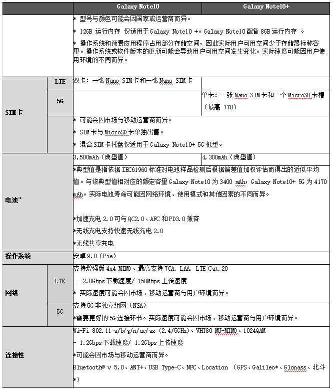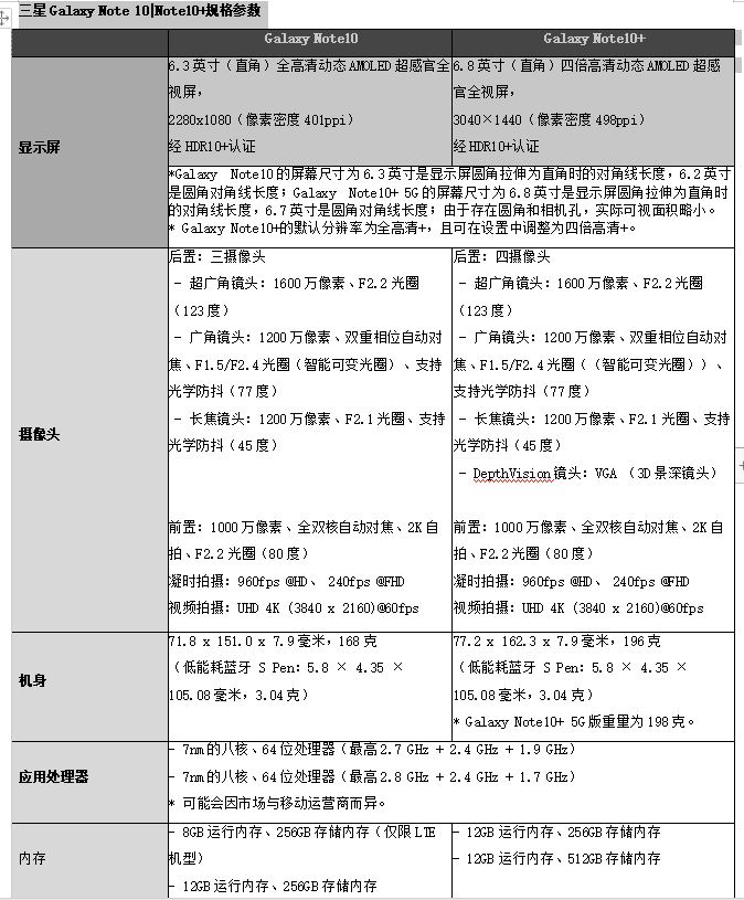 三星Galaxy Note 10|Note10+规格参数