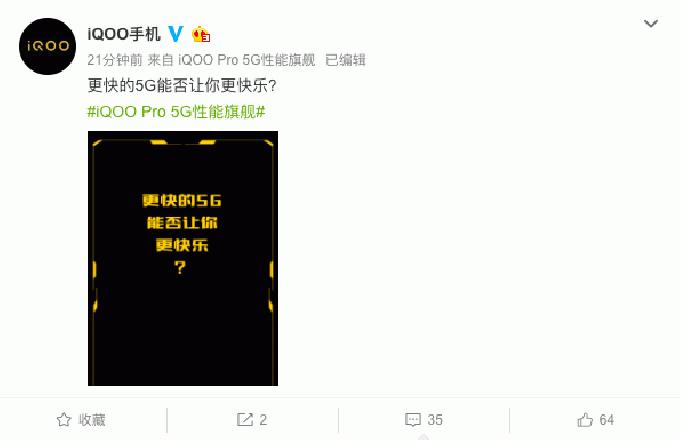 iQOO官博宣布,iQOO Pro将采用骁龙855 Plus处理器,凸显旗舰地位;