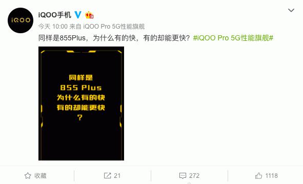 今天,iQOO官方微博正式宣布,iQOO Pro将配置骁龙855Plus处理器:“同样是855Plus,为什么有的快,有的却能更快?”这与之前官博的疯狂暗示一致。不过,这微博似乎为iQOO Pro的性能旗舰定位埋下了伏笔。作为同样的硬件配置,为何iQOO Pro的骁龙855 Plus要比其它的更快呢?关于这个问题,iQOO产品经理给出了答案。