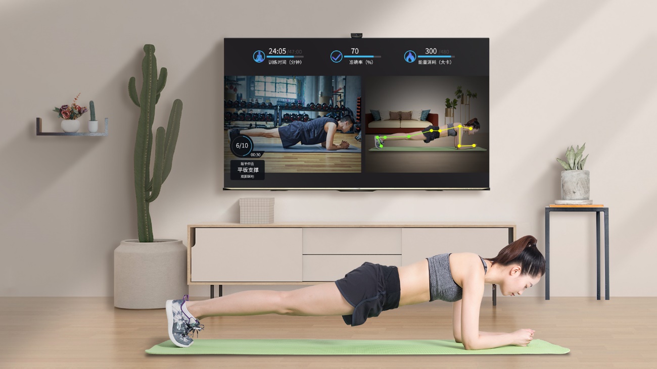 3D Avatar K歌、AI健身、AI视觉顾问是海信社交电视拓展的全新客厅生活场景,通过3D Avatar K歌,你可以去东京、巴黎甚至去火星外太空场景K歌,在5G环境下还可以邀请好友在线连麦K歌。使用AI 健身功能,在AI人体姿态动作矫正的指导下,在客厅里也能练出马甲线。