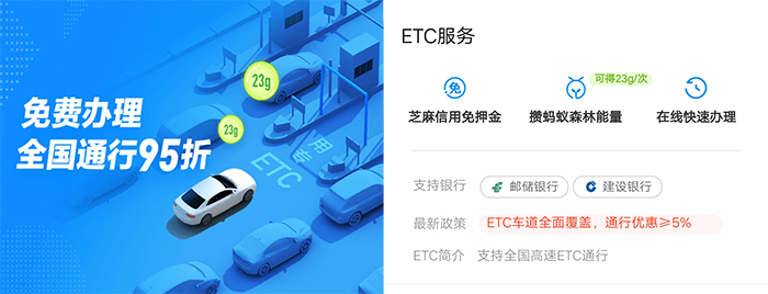 支付宝可免押金办理ETC 6大免费