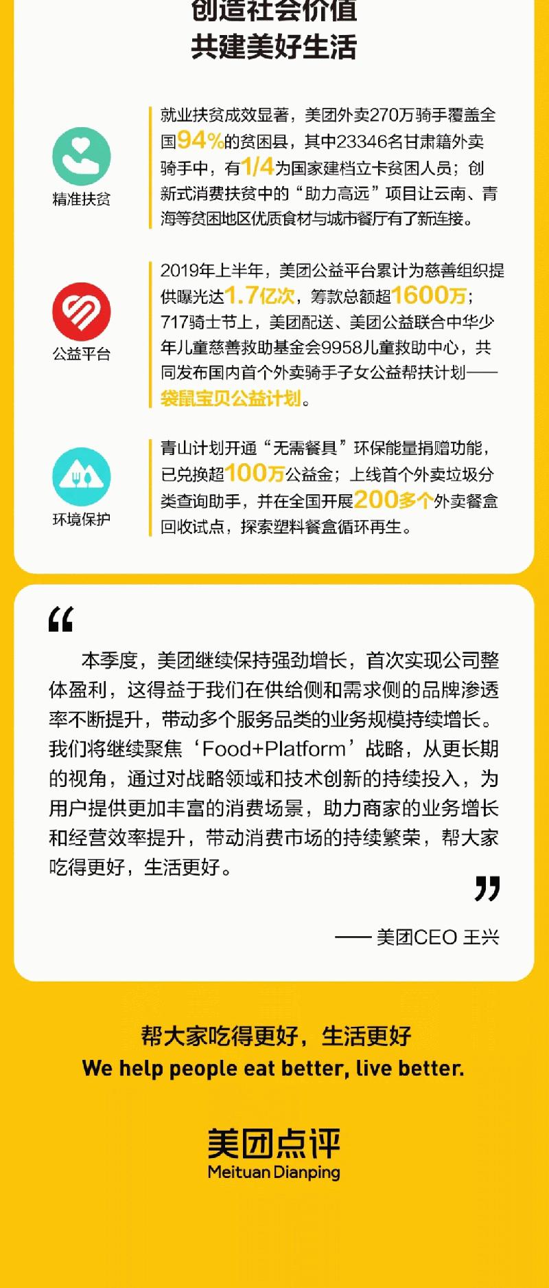 美团发布Q2财报:首次实现整体盈利 将保持长期投入