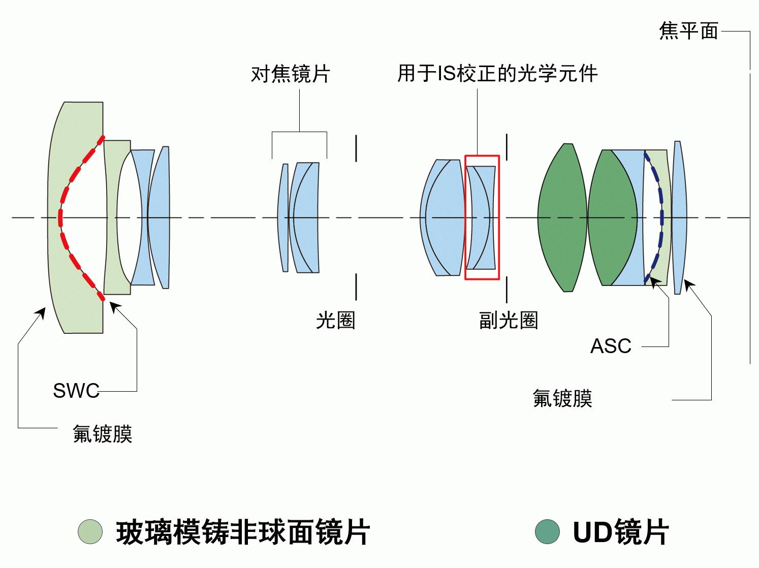 通常,由于光的折射会产生像差,图像质量因此会降低。EOS R系统则利用大口径卡口和短后对焦距离特性,使得大口径镜片可以放置在成像面附近,由此而减轻光线折射及其产生的像差,实现更高画质,同时使镜头整体变得更为紧凑。除了以上优势外,RF24-70mm F2.8 L IS USM还通过加入3枚玻璃模铸非球面镜片和3枚UD(超低色散)镜片对多种像差进行大幅度校正,以实现在整个变焦范围内,从画面中心到边缘的高解析力表现。此外,该镜头还使用了佳能开发的ASC空气球形镀膜技术,利用空气折射率低于光学玻璃的特性,通过在镀膜中包含一定比例的空气,从而实现了低折射率,特别是对近乎垂直入射的光线,可抑制损害图像质量的眩光和鬼影现象。