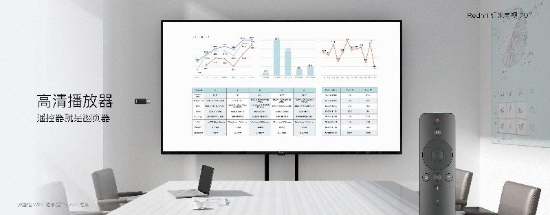 Redmi红米电视70英寸无需通过HDMI接口驳接笔记本电脑,用U盘即可开启会议, docx .xlsx .pptx .pdf 等主流办公文件格式均可流畅展示,遥控器就是翻页器。