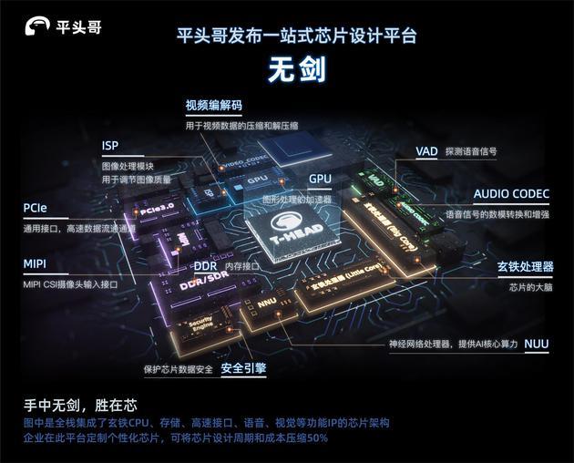 8月29日,阿里巴巴旗下半导体公司平头哥发布SoC芯片平台“无剑”,可帮助芯片设计企业将设计成本降低50%,设计周期压缩50%。阿里方面介绍,无剑是面向AIoT时代的一站式芯片设计平台,提供集芯片架构、基础软件、算法与开发工具于一体的整体解决方案。作为系统芯片开发的基础共性技术平台,无剑由SoC架构、处理器、各类IP、操作系统、软件驱动和开发工具等模块构成。平台能够承担AIoT芯片约80%的通用设计工作量,让芯片研发企业专注于剩余20%的专用设计工作,降低系统芯片的研发门槛,提高研发效率和质量,让定制化芯片成为可能。未来,无剑平台还将面向MCU、工业、安全、车载、接入等应用领域,持续推出面向领域的SoC平台。