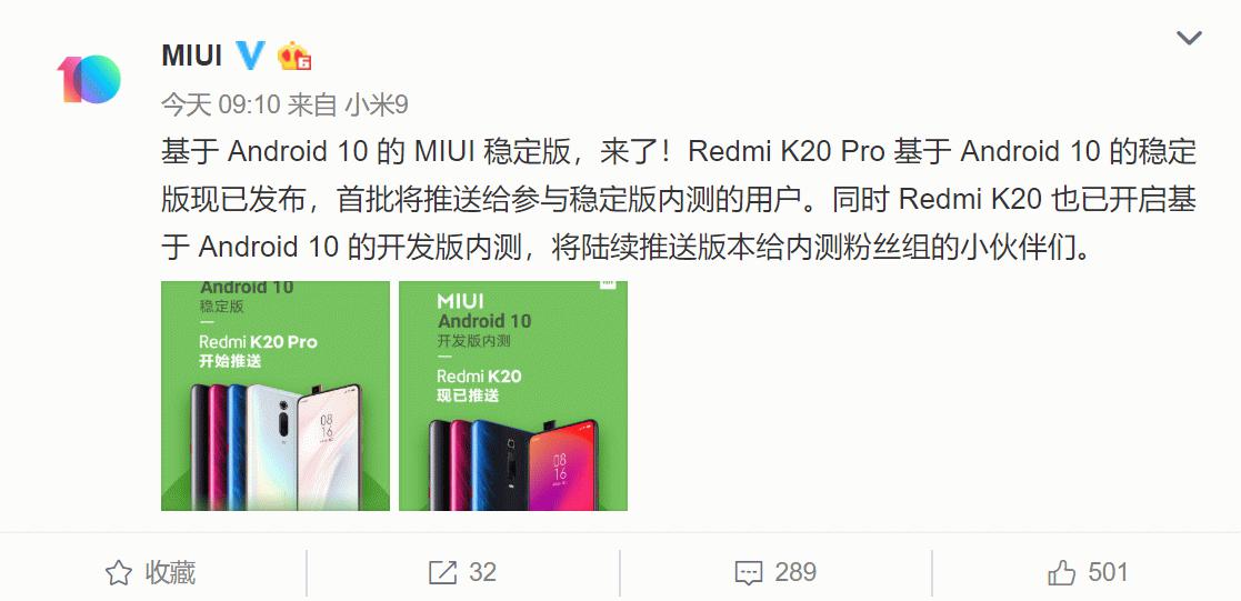 首个Android 10稳定版来了!Redmi K20 Pro率先适配升级 ......