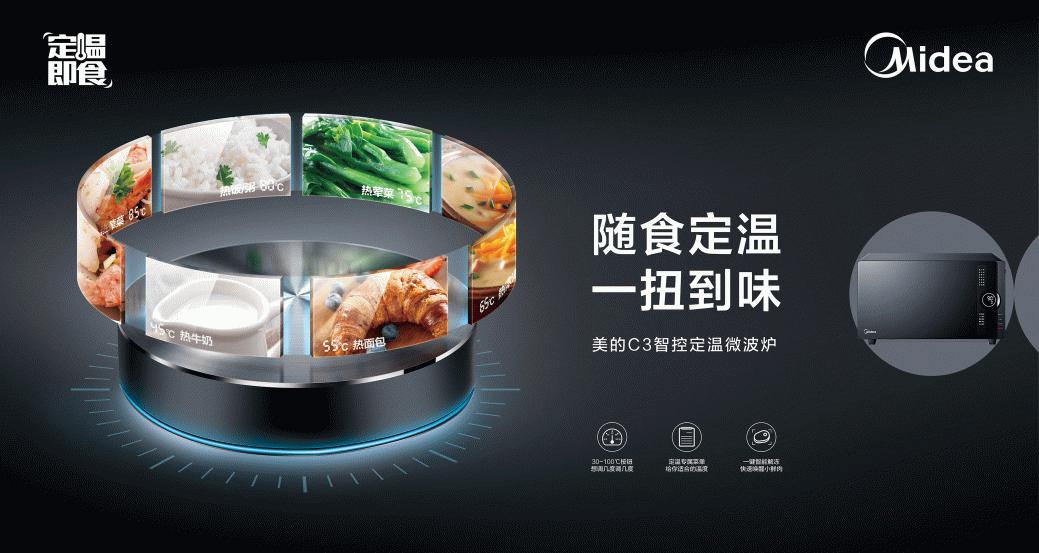 美的微波炉“定温热”技术,独创定温加热控制算法,创新地将微波炉的控制方式由传统的调火力加时间,优化成为直接调温度。我们知道,每种食材它最适合的加热温度,不会随食物分量的变化而变化。过去传统微波炉需要考虑食物分量这个变化因素,每次消费者根据经验去猜测,加热多久才合适。而且时常发生,一次加热不到位,或者加热两次热过火的情况。美的定温热算法,配合日本NTC感温探头,颠覆性的将微波加热的控制方式变成温度调节,通过监测食物温度来控制微波输出,完美解决不同食材、不同分量,加热时间、加热火力不一致的难题,一次操作成功率接近百分之百,远远领先于行业水平。