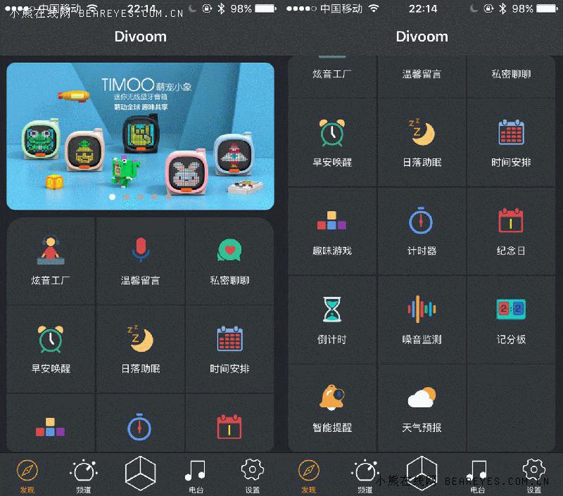底部的“频道”可以控制音箱屏幕的变换。“电台”里则藏着全世界50000+音乐电台,你可以根据喜好选择世界各地的好声音,又或是播放本地和TF卡里的音乐。接下来我们看看它的更多玩法。