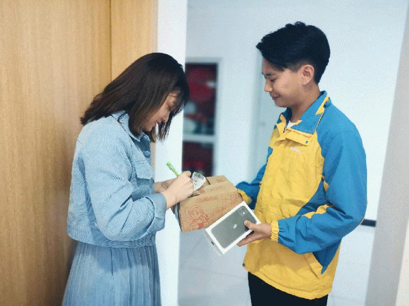 与此同时,在苏宁易购线上渠道,全国各地的果粉均在开售第一时间进行抢购,石家庄的李女士,8点整在苏宁易购抢先下单购买iPhone11新机,从下单到收货入手新机,仅用时12分钟,苏宁物流火箭哥飞速送达,完成全国线上购买的iPhone11第一单。