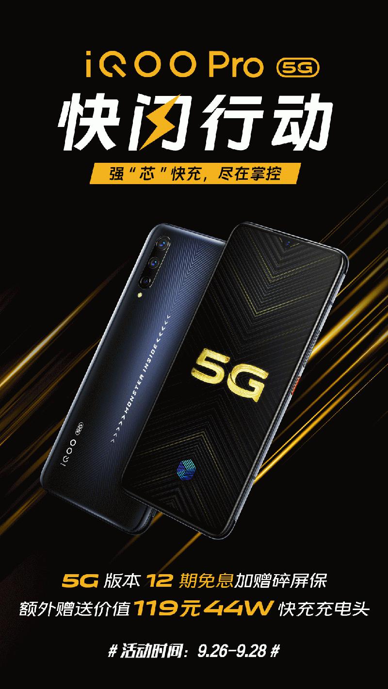 iQOO Pro 5G快闪行动:12期免息分期加赠碎屏保再送快充插头