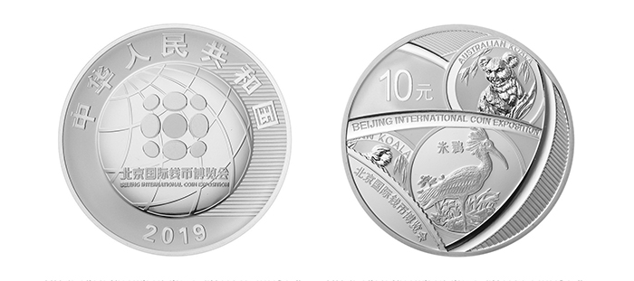 中国人民银行定于2019年10月28日发行2019北京国际钱币博览会银质纪念币一枚,该枚银质纪念币为中华人民共和国法定货币。纪念币正面图案为北京国际钱币博览会标志,衬以地球图形及装饰线条等组合设计,并刊国名、年号。背面图案为中国珍稀动物朱鹮银币与澳大利亚考拉银币图案,结合钱币图形元素组合设计,并刊“北京国际钱币博览会”中、英文字样及面额。该枚银质纪念币为精制币,含纯银30克,直径40毫米,面额10元,成色99.9%,最大发行量30000枚。