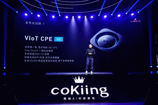 2019年10月21日,云米携手高端AI科技家电品牌coKiing,在北京举办主题为“用AI科技,探索无限未来”发布会。会上发布了VIoT 5G CPE(Customer Premise Equipment,客户终端设备),是全球第一款混合网络5G CPE,专为家庭IoT连接而生,可以实现5G信号全屋场景全覆盖,更重要的是,VIoT 5G CPE下行速率理论值高达3.4Gbps,支持256+设备同时接入,真正实现全屋家电互联互通,让全场景智慧生活体验触手可及。