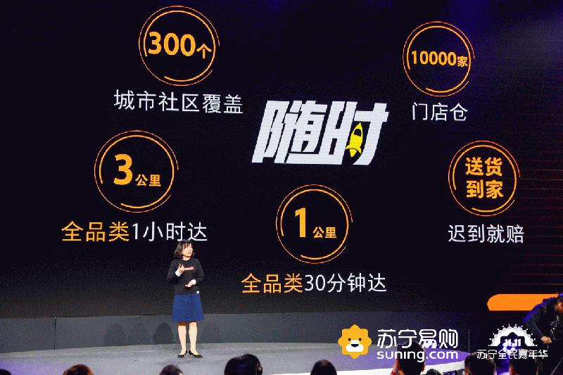 范春燕介绍,“省时”指的是依托全场景业态和立体化服务网络,苏宁将实现全品类1公里30分钟达的“闪电配送”,和苏宁全业态1小时内触达到用户。