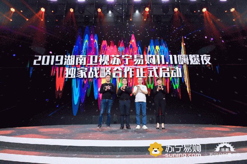 据悉,苏宁将在11月10日,和湖南卫视共同举办首届狮晚“2019湖南卫视苏宁易购11.11嗨爆夜”,中国女排、吴亦凡、刘宇宁等将登台,1发布会现场举办了启动仪式。