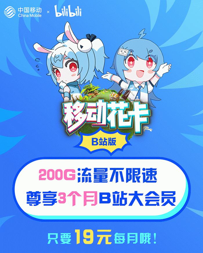 移动花卡哔哩哔哩宝藏卡上线 200GB不限速