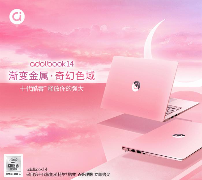 11月2日,全球首款金属渐变笔记本adolbook14在京东开售,售价5199元。adolbook14采用三面金属覆盖,机身轻至1.3Kg,薄至16.5mm。外壳采用纳米级水性环保涂料,不仅加强了颜值表现,让笔记本保持始终如一的光泽亮度,更带来丝绸般温润触感,其渐变效果更加温柔,粉色与白色恰当的比例让整机美感更显高级。adolbook14配备14英寸16:9屏幕,具备4.1mm窄边框,屏占比高达87.4%。背光键盘支持多级亮度调整,1.4mm键程,一体式高精度触摸板,支持3指、4指操作。搭载第十代酷睿i5处理器,8GB内存+256GB M.2 SSD,内置72Wh大电池,离线影音续航长达20小时。
