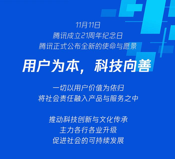 “用户为本 科技向善”腾讯正式公布全新使命愿景