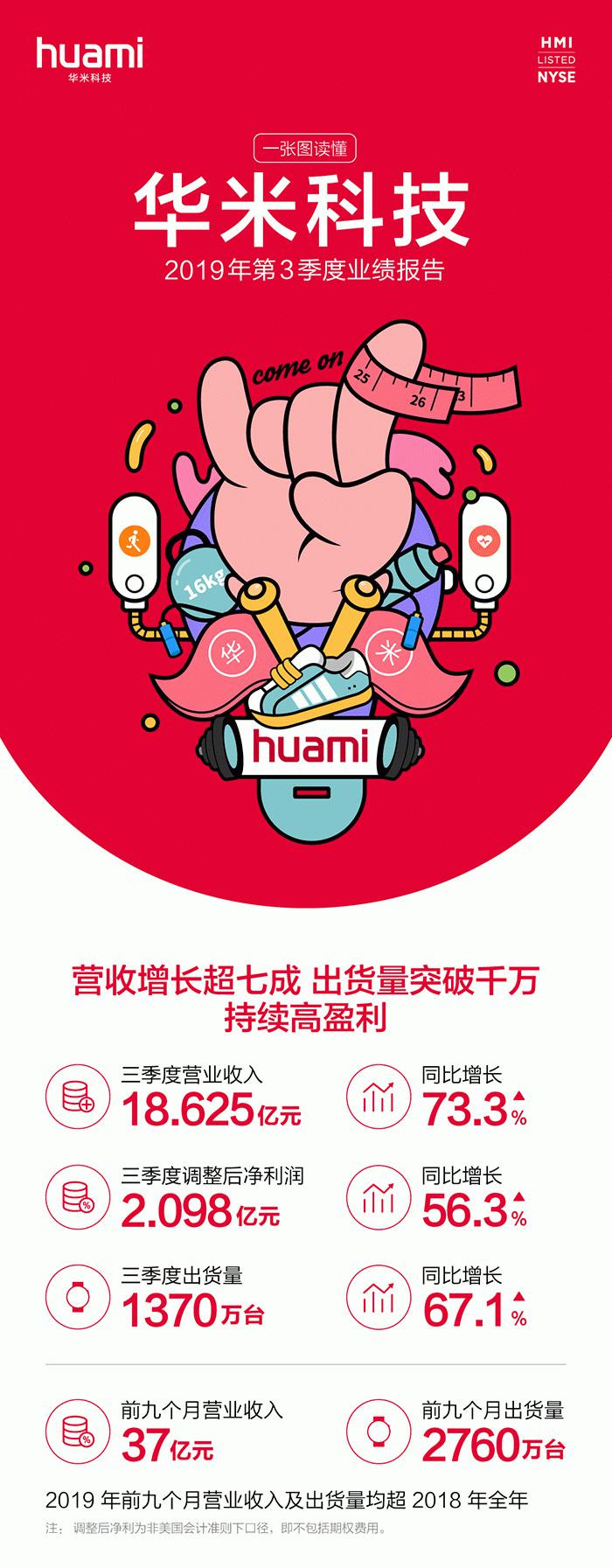 【小熊在线网 新闻报道】11月12日,华米科技发布了2019年第三季度财报,公司营收和出货量双双大增七成。