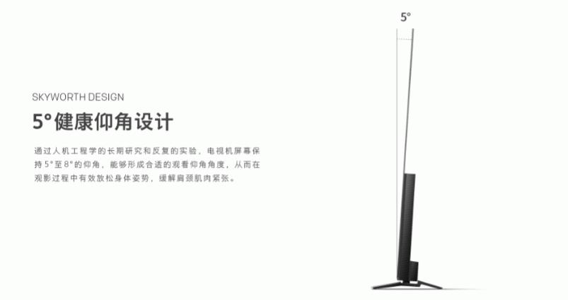创维希望用户在家中看电视时,电视屏幕和用户之间能够形成适合的观看仰角角度,从而使用户有效放松身体姿势,缓解肩颈肌肉的紧张感,全身心地沉浸在电视内容中,不会因为长时间观看而感到不适。