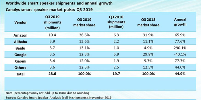 Q3智能音箱市场 阿里勇夺国内第一全球第二