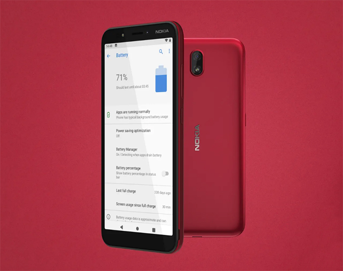 12月11日,诺基亚手机官网上线Nokia C1手机。Nokia C1采用5.45寸(FWVGA+)屏幕,配备1.3GHz四核心处理器、1GB内存+16GB存储,支持2G、3G、WIFI网络。前置500万像素相机,后置500万像素自动对焦相机,均配有闪光灯。电视容量为2500mAh,可提供高达一日的续航时间。预装安卓9 Go系统,有Micro USB接口,3.5mm耳机接口,FM调频。