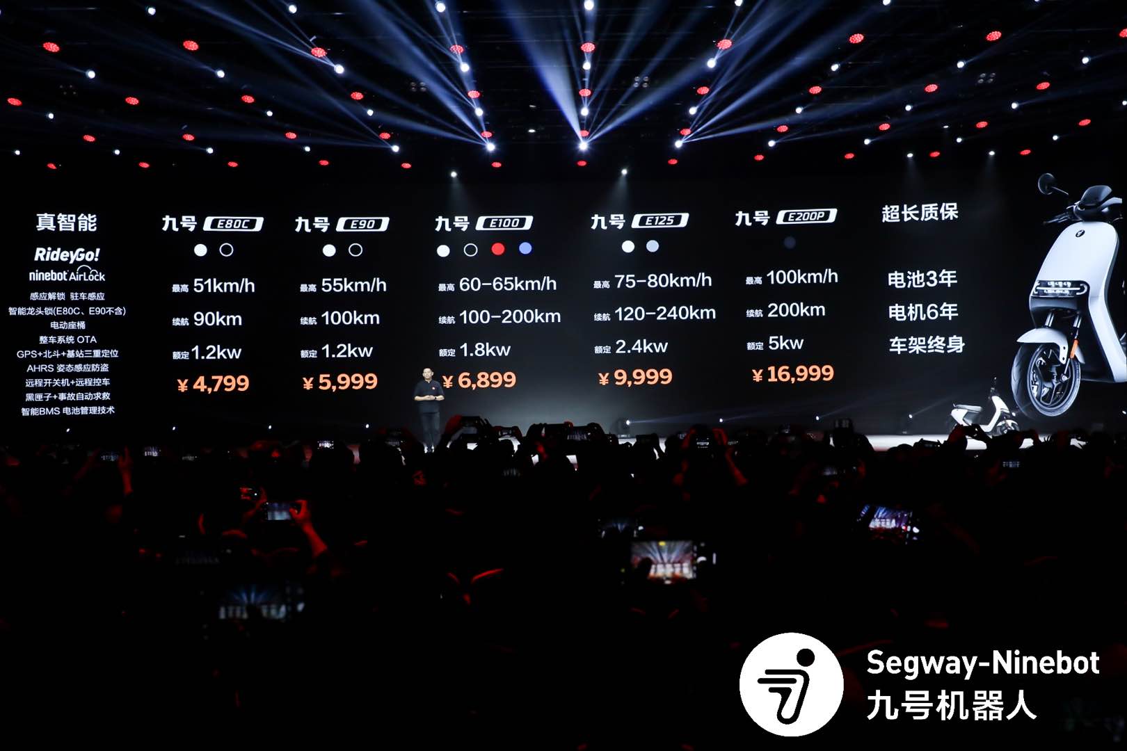 这次发布的九号电动E系列和九号电动C系列均配备了Ninebot RideyGo即停即走系统,用户带上手机接近车辆时即可通过Ninebot Airlock感应解锁技术自动解锁,停车后快捷锁车;沉淀7年自主研发的锂电智能BMS 5.0技术,有智能并联/快充、健康状态SOH估算、双重过流/短路/过压保护等20多项保护措施;通过 GPS、北斗、基站三重定位,让你时刻掌握爱车的踪迹;当车辆发生异动、倾倒时,AHRS姿态感应系统能够敏锐感知,第一时间通知车主;支持OTA无线升级,不断更新优化功能。