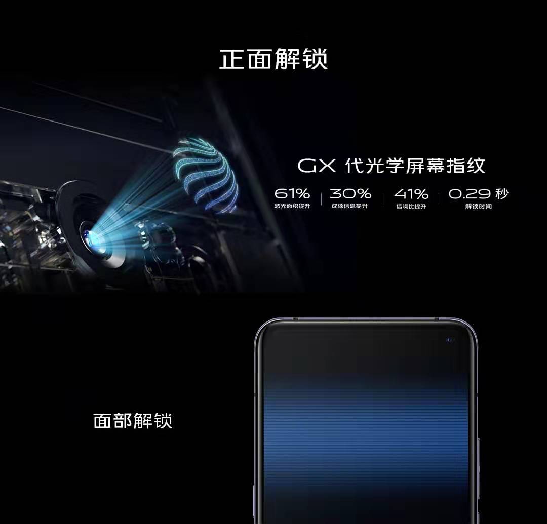 同时,vivo X30 Pro上带来了GX代光学屏幕指纹方案,相比上一代产品感光面积提升61%,解锁时间仅需0.29秒,有效提升识别性能及灵敏度,让用户畅享一触即开的快感。