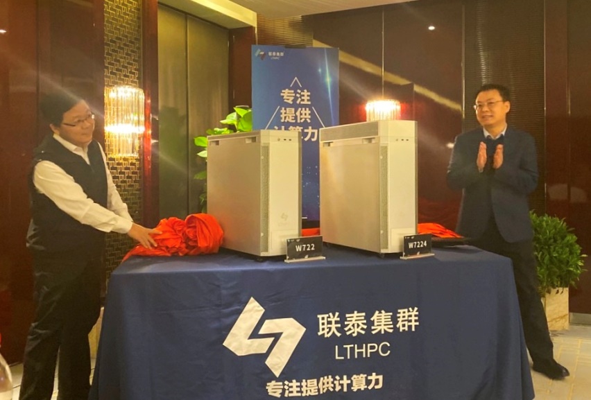 英特尔中国数据中心技术售前经理——拓庆国先生与清华大学——张宇飞教授共同为联泰集群水晶静音工作站揭幕。
