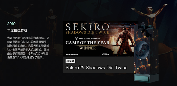 2019年Steam大奖 《只狼:影逝二度》获年度最佳游戏