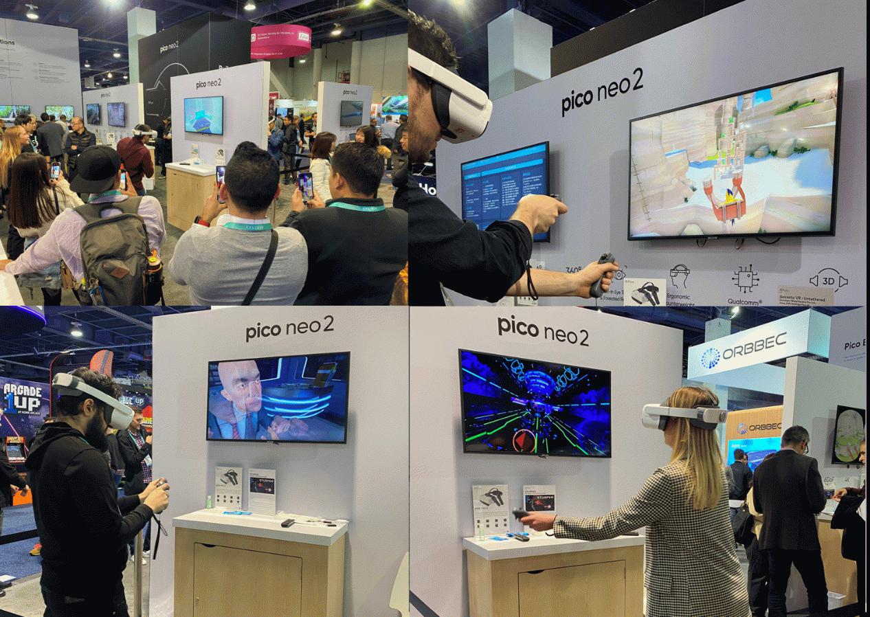 本次CES现场,Pico Neo 2就通过《OhShape》、《Stumper》、《Angry Birds VR: Isle of Pigs》等多款6DoF VR爆款游戏,重点展示了其优秀的头手6DoF追踪能力。