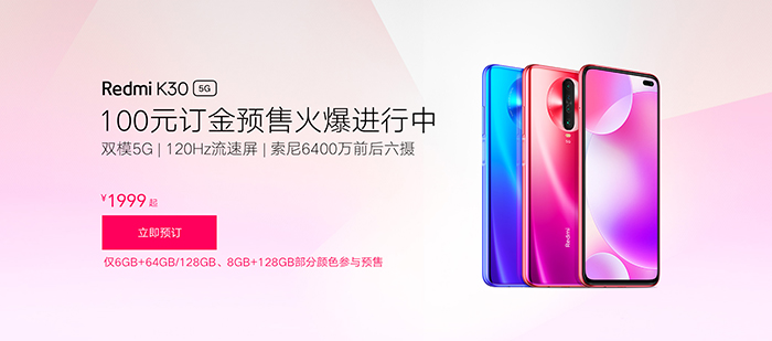 Redmi K30 5G将于1月14日上午10点再次开售,共有“深海微光”和“花影惊鸿”两种配色和3个内存版本可供选择。其中1999元的6+64GB版深海微光配色是首次开卖。
