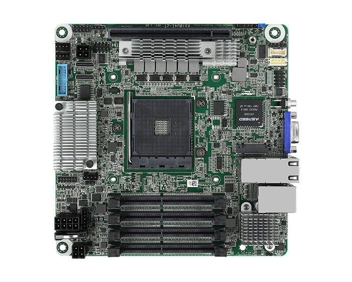 X570D4I-2T采用标准的ITX设计,长宽尺寸17×17厘米,最高支持16核心、105W热设计功耗的锐龙9 3950X,并在各处供电电路覆盖散热片。主板提供四条DDR4 SO-DIMM内存插槽,最大支持64GB容量,最高频率2400MHz,可选ECC,另有一条PCIe 4.0 x4扩展插槽、一个M.2 2280硬盘插槽(PCIe 4.0 x4/SATA 6Gbps),通过两个OCulink接口扩展支持八个SATA 6Gbps,并带有祥硕AST2500 BMC远程管理芯片。输入输出方面,提供两个万兆网口、一个远程管理千兆网口、两个USB-A 3.0/3.1、一个VGA接口,其中万兆网卡来自Intel X550-AT2。由于不是消费级产品,所以没有提供声卡和音频口、HDMI和DisplayPort数字输出接口。