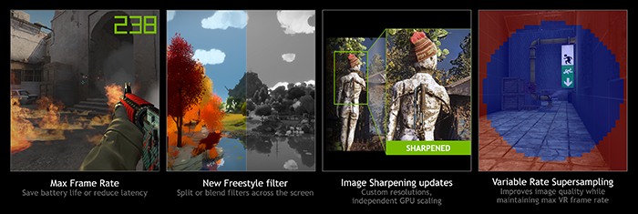 此外,Nvidia在此次更新中继续改进了1月的CES 2020版驱动增加的新功能。最大帧速率现在的设置范围更加广泛,可以支持每秒20帧到每秒1000帧之间的任意数值,并且可以在低延迟模式和省电模式间设置切换,来使GPU维持在特定的频率。而可变速率超级采样(VRSS)功能的支持范围也进一步提升,目前已经增加到20+款游戏。剩下的像滤镜功能以及图像锐化也都有所改进,效果获得了提升。