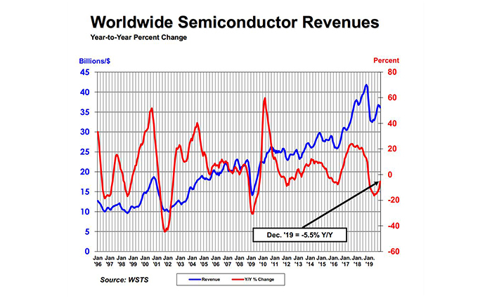 2019年全球半导体行业营收大跌12%
