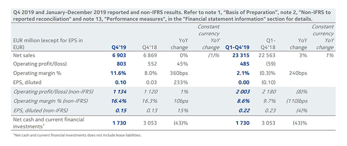 【小熊在线网 新闻报道】北京时间2月6日,诺基亚发布了2019财年第四季度及全年财报。