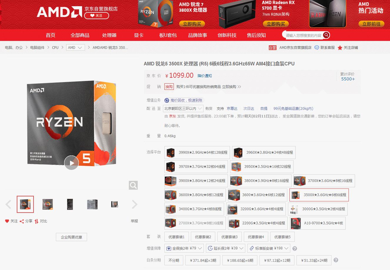 AMD锐龙3500X京东购买链接: