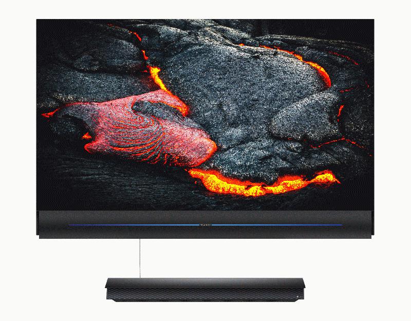 W81系列电视采用超薄无缝贴墙的Wallpaper OLED壁纸设计及分体式结构,并利用OLED屏幕自发光、柔性的特点,将屏幕的厚度压缩至4.6mm,超薄的OLED屏体厚度几乎为iPhone 11Pro的一半。W81系列电视从侧面看上去极为震撼,宛如一张壁纸贴在墙上,让人们再一次摆脱电视机厚重的产品形态印象,彻底颠覆电视形态。