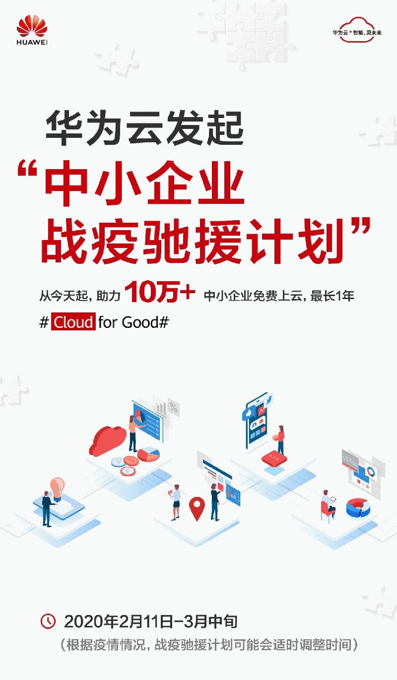 【小熊在线网 新闻报道】2月11日,华为宣布,华为云联合伙伴共同发起“中小企业战疫驰援计划”,助力10万+中小企业免费上云,最长1年。时间为2月11日-3月中旬,并将根据疫情情况适时调整。