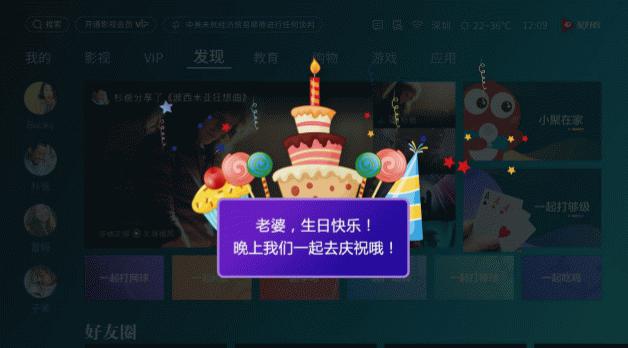 升级版的社交电视还首创了可以霸屏分享的家庭留言版功能。用户可以通过文字、图片、语音、视频四种形式进行在电视留言板上留言,当AI检测到家人生日、节日等关键词时,社交电视则会展示非常酷的霸屏祝福动效,营造出惊喜而浪漫的氛围。