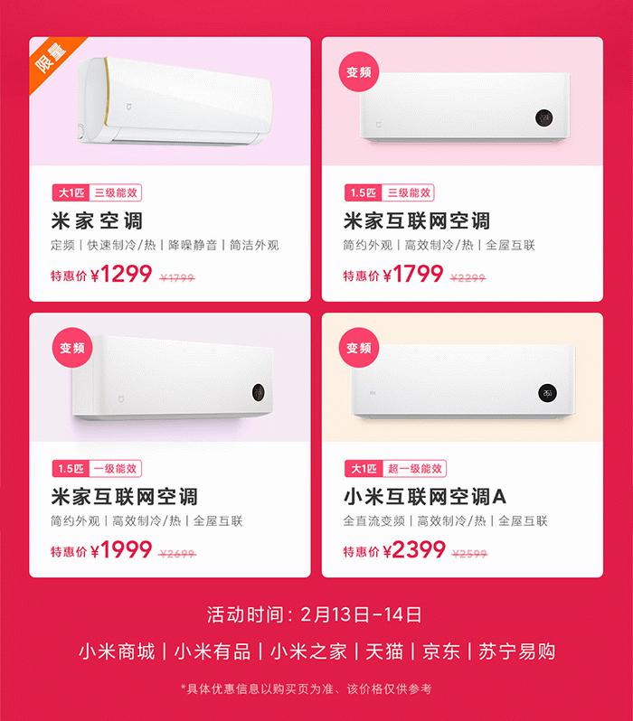小米/米家互联网空调情人节全系直降 最低1299元