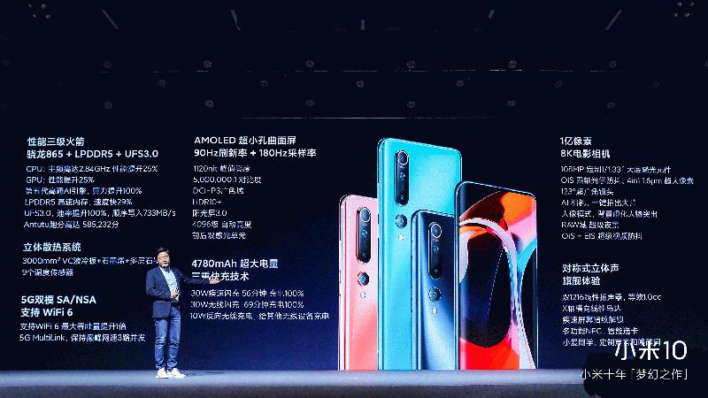 2月13日,小米公司举办2020年第一场纯线上旗舰发布会,正式发布年度旗舰小米10系列。小米10系列首发骁龙865旗舰平台,并采用一亿像素8K超清相机以及对称式立体声。同时小米10 Pro在权威网站DXOMARK上获得相机124分,音频76分,成为全球拍照最好且外放音质最佳的旗舰手机。小米10系列售价3999元起,将于2月14日正式上市。