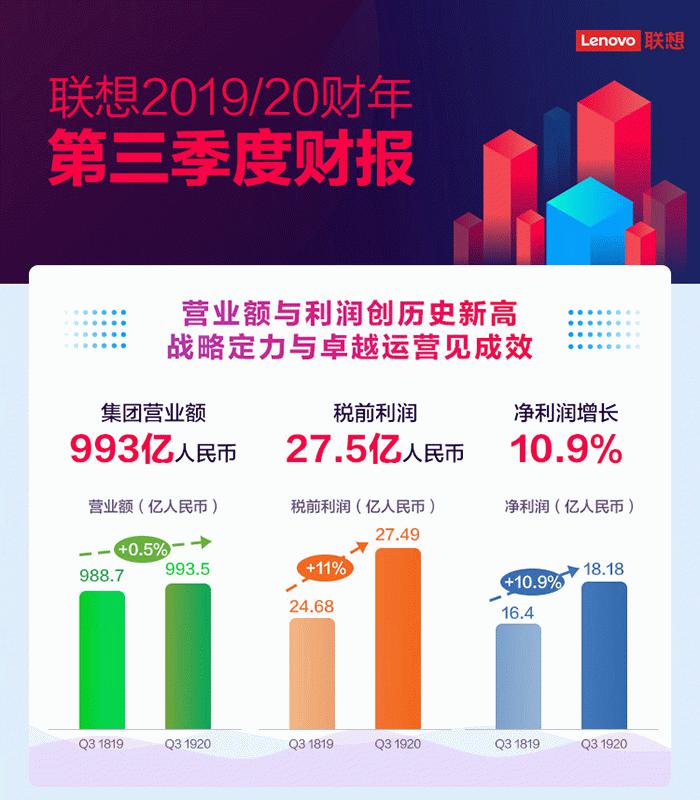 【小熊在线网 新闻报道】2月20日,联想集团公布了截至2019年12月31日的19/20财年第三财季业绩。营收与税前利润再创历史新高:营收达993亿人民币,连续 ......