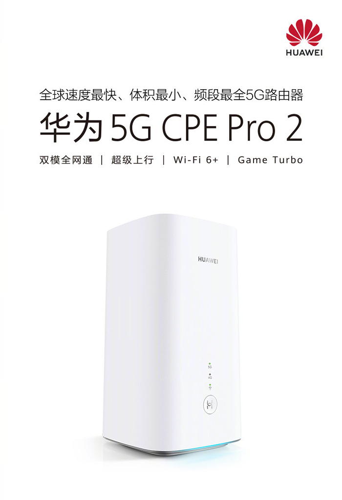 速度最快Wi-Fi 6+5G路由器 华为5G CPE Pro 2发布
