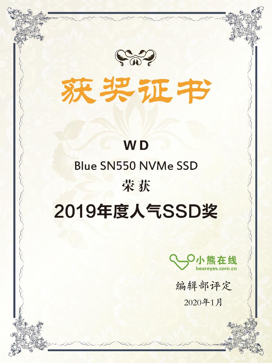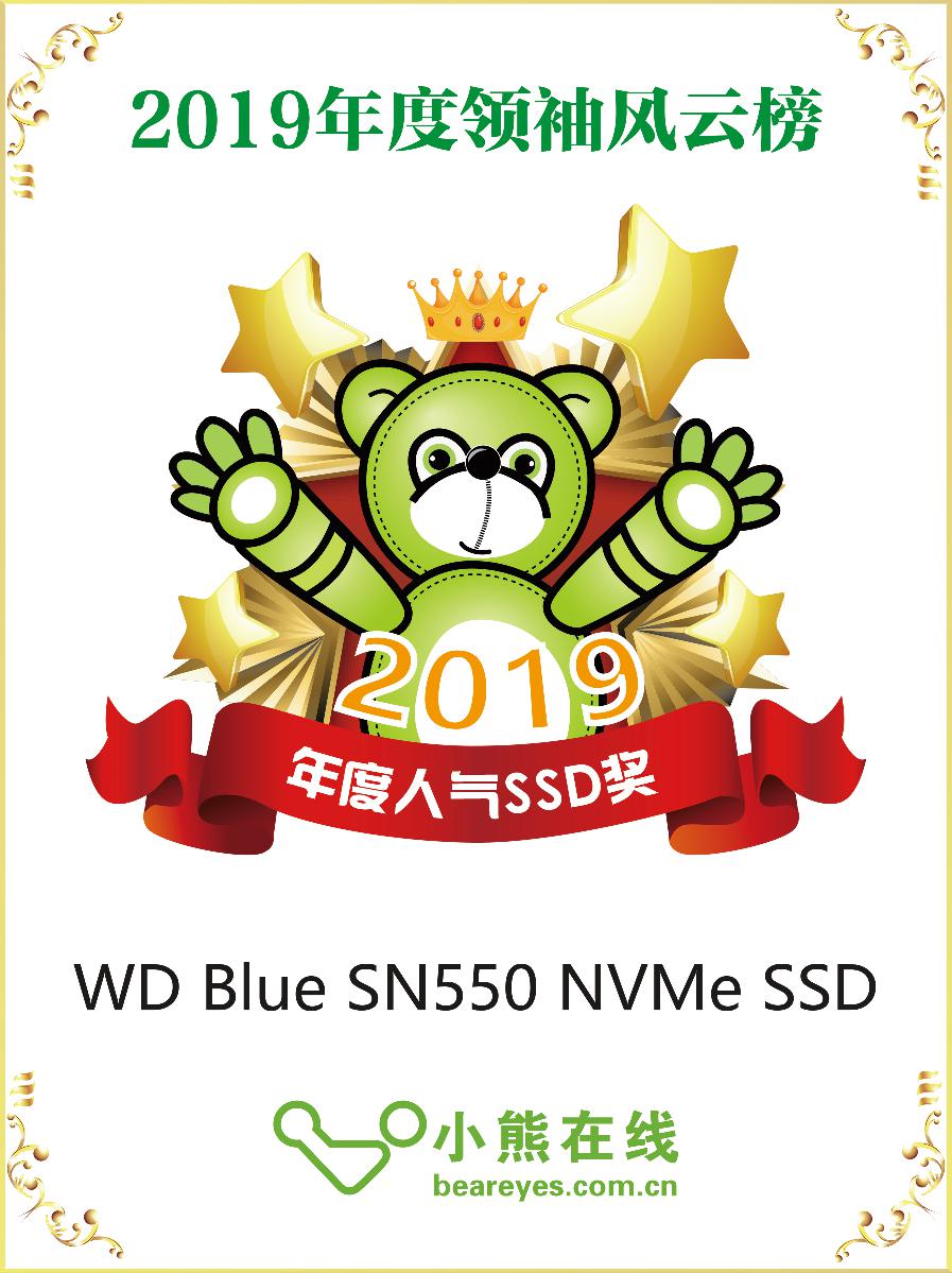 综上所述,2019年度存储类别产品,经过小熊在线编辑部一致评定, WD Blue SN550 NVMe SSD荣获年度人气SSD奖。